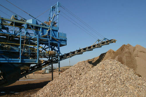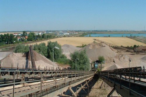 Über das Transportband gelangt der Kies in die Aufbereitungsanlage